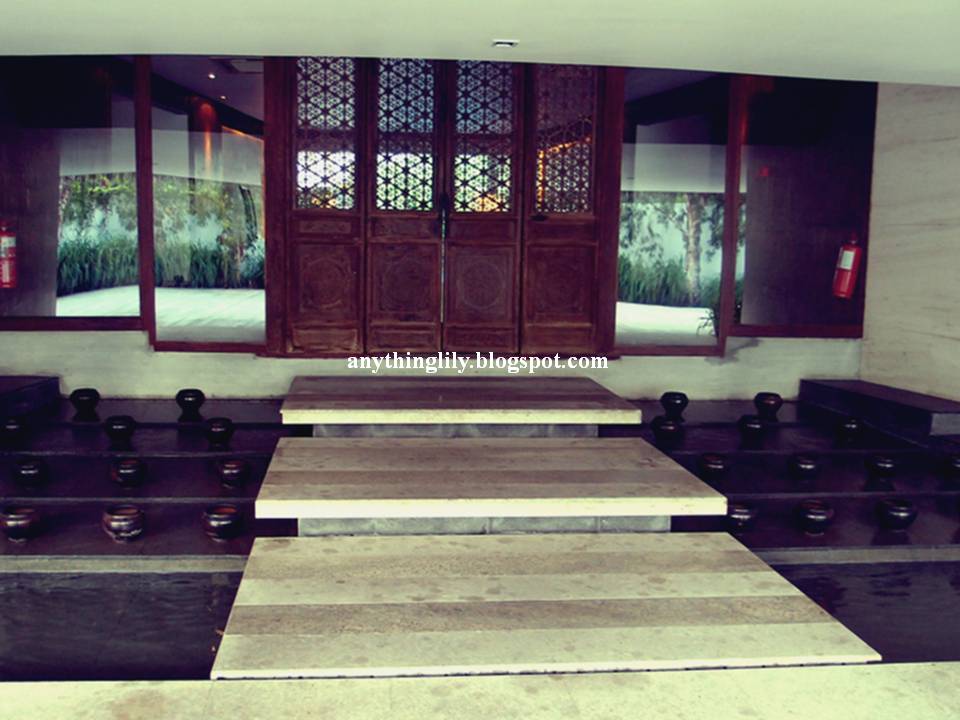 This is the entrance into the hotel reception area/lobby. This place is lit with candles at night.(see picture below)